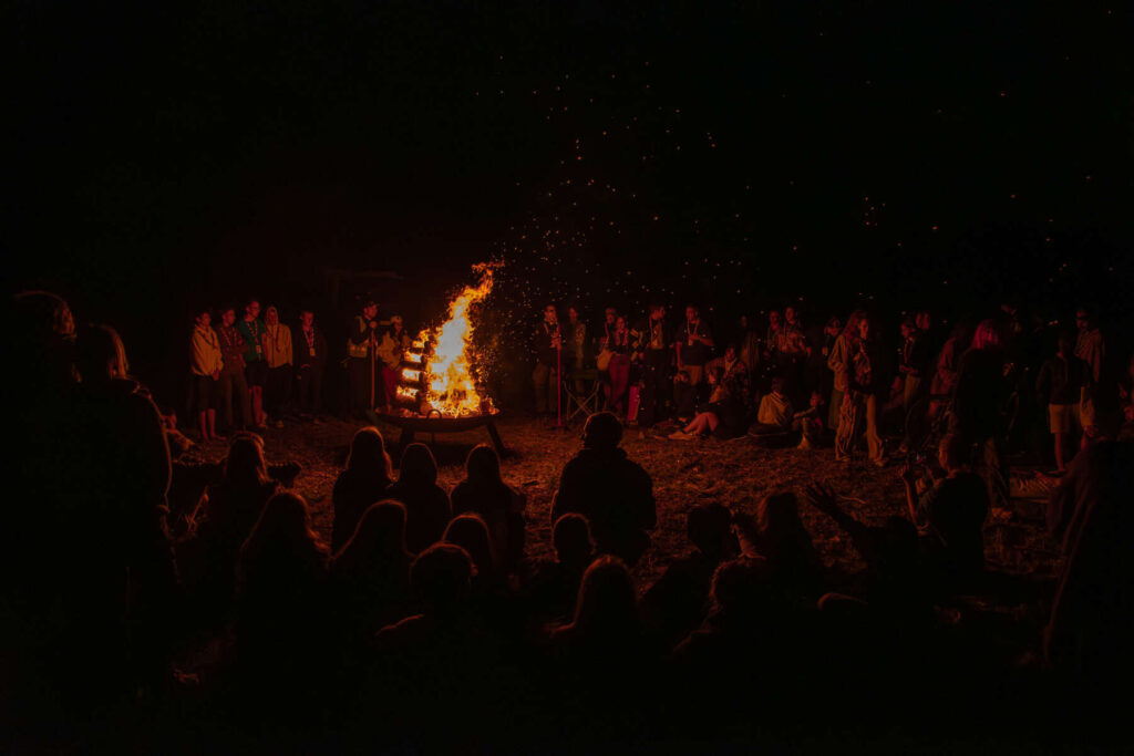 Večer smo otvorili s prižigom ognja in nadaljevali z večernim programom. Udeležencem in prostovoljcem je bila na voljo široka izbira “walk in” delavnic, petja ob ognju in predstavitve možnosti taborniškega udejstvovanja v tujini. Večer se je zaključil s karaokami v taBARniku.