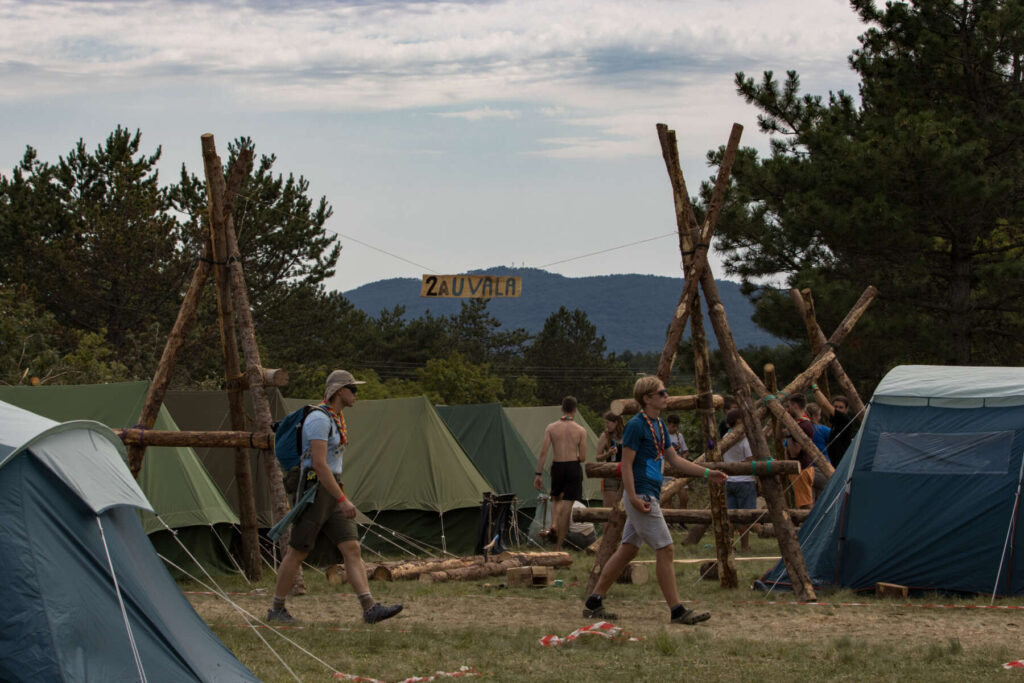 Zlet se je zares začel in preživeli smo prvi poln dan na prizorišču. Udeleženci so prevzeli košare za zajtrk in pojedli v svojih trgih, ki so jih delno postavili že prvi dan. Za vse prostovoljce je bil zajtrk v jedilnici. Kosila, ki jih priskrbi Slorest vsi skupaj pojemo v pokriti jedilnici, večerje pa vodi kuhajo po trgih. Da prostovoljci in ljudje z raznimi dietami ne ostanejo lačni, poskrbijo naši taborniški kuharji. Skozi celoten dan imamo vsi dostop tudi do pestre izbire svežega sadja in raznih drugih malic.