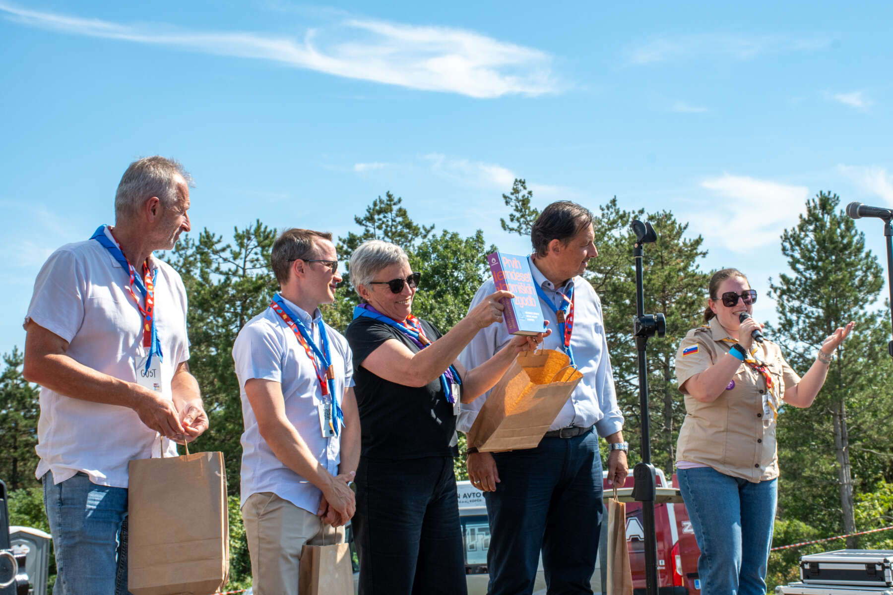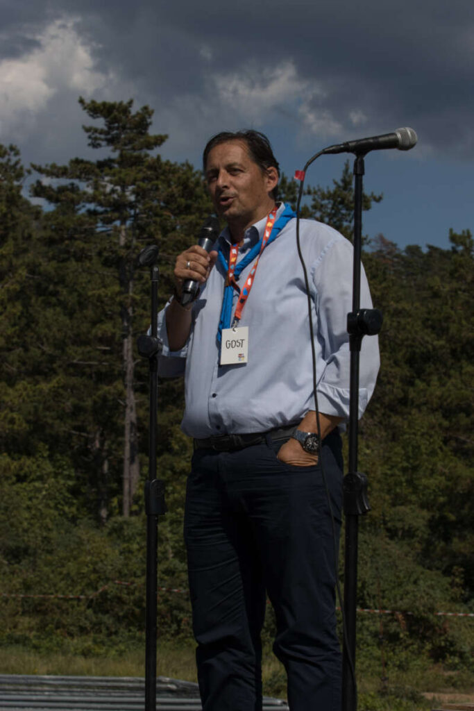 V četrtek, 31. 7. 2025, smo se na zletnem prostoru v Kazljah zbrali vsi udeleženci in prostovoljci 17. Zleta Zveze tabornikov Slovenije. Zgodaj popoldan so nas na prizorišču obiskali predstavniki okoliških lokalnih skupnosti in nam pomagali otvoriti prostor. Obiskali so nas gospod Matej Glavina, podžupan občine Sežana, gospod Erik Modic, župan občine Komen, gospod Mario Benkoč, podžupan občine Divača, gospa Vanja Jelen, podžupanja občine Sežana in gospod Andrej Sila, župan občine Sežana. Ob prihodu sta jih sprejela Rok Pandel, načelnik Zveze tabornikov Slovenije, in Nina Kapelj Lukman, vodja Zleta, ki sta jih popeljala po prostoru in jim predstavila zletno dogajanje. Župan občine Sežana je na otvoritvi prostora nagovoril navzoče udeležence in prostovoljce. Zaželel nam je veliko veselja in uživanja na Krasu ter pohvalil zelo uspešno sodelovanje med lokalnimi skupnostmi, občinami in taborniki. Iskreno se zahvaljujemo vsem predstavnikom lokalnih skupnosti, brez katerih organizacija Zleta 2025 ne bi bila mogoča.