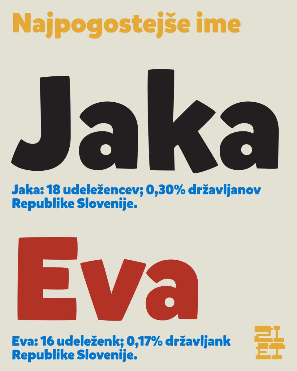 Podatki so zbrani na podlagi stanja zaključenih prijav vseh udeležencev in udeleženk iz Slovenije in še vedno odprtih prijav prostovoljcev in prostovoljk z dne 14. aprila 2025. Avtorica vizualov je Maša Pušnik.